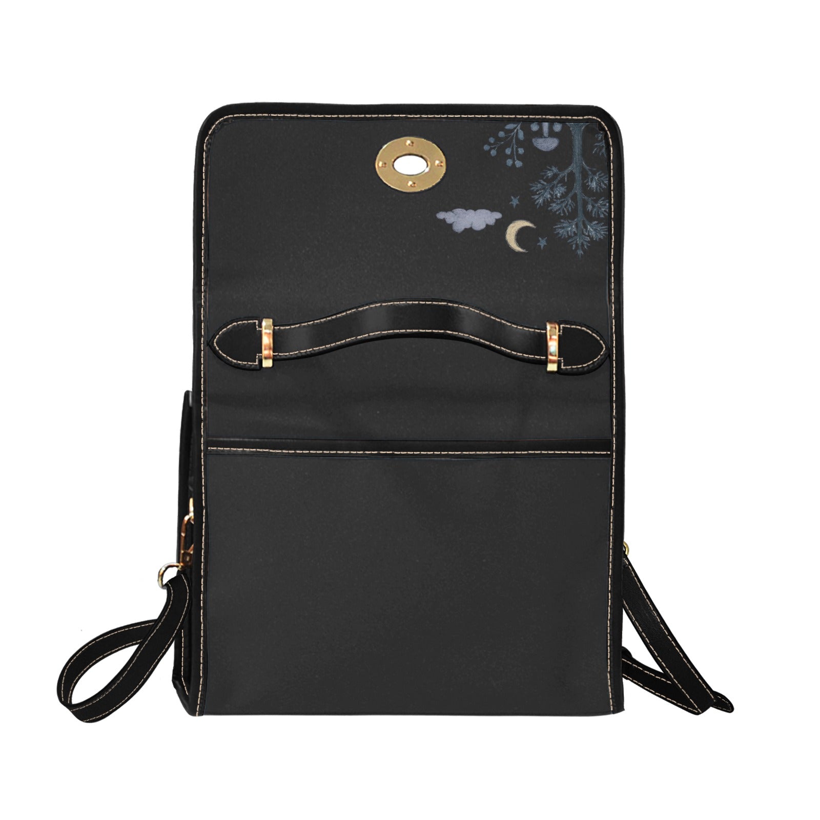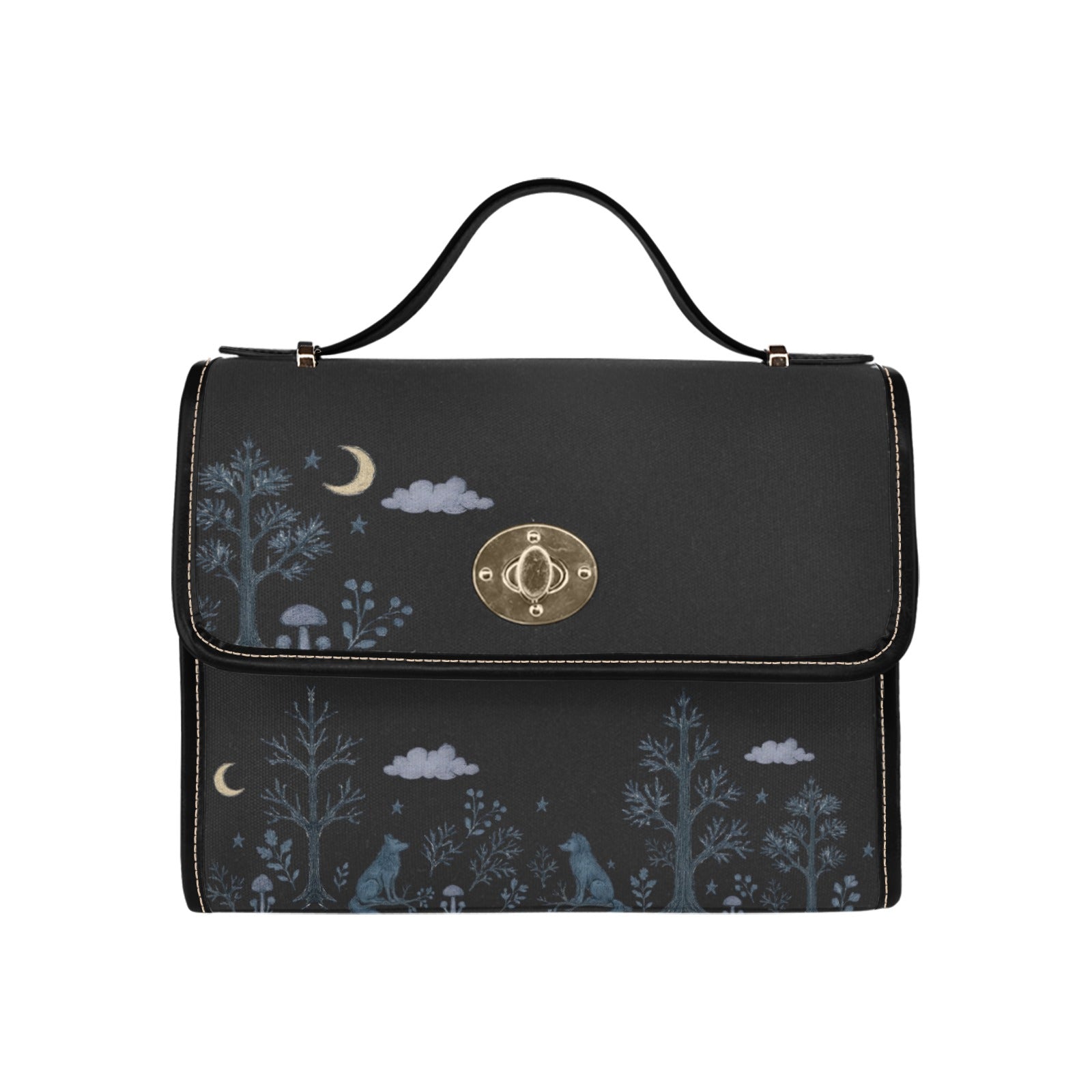 Lock cross body bag featuring Wolfs in a gloomy forest. In Hungarian mythology and folklore, the wolf is a primal figure, sometimes a totem animal that was once revered and later became a symbol of evil